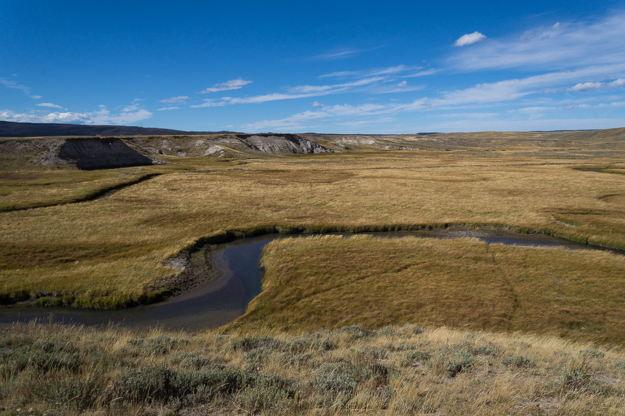 Lever difficile, à cause de l’orage et de la pluie, nous avons passé une mauvaise nuit. C’est la journée de la géothermie. On longe une jolie rivière, puis on croise une famille très sympathique qui nous prend pour des allemands, on a bien discuté, un moment agréable.